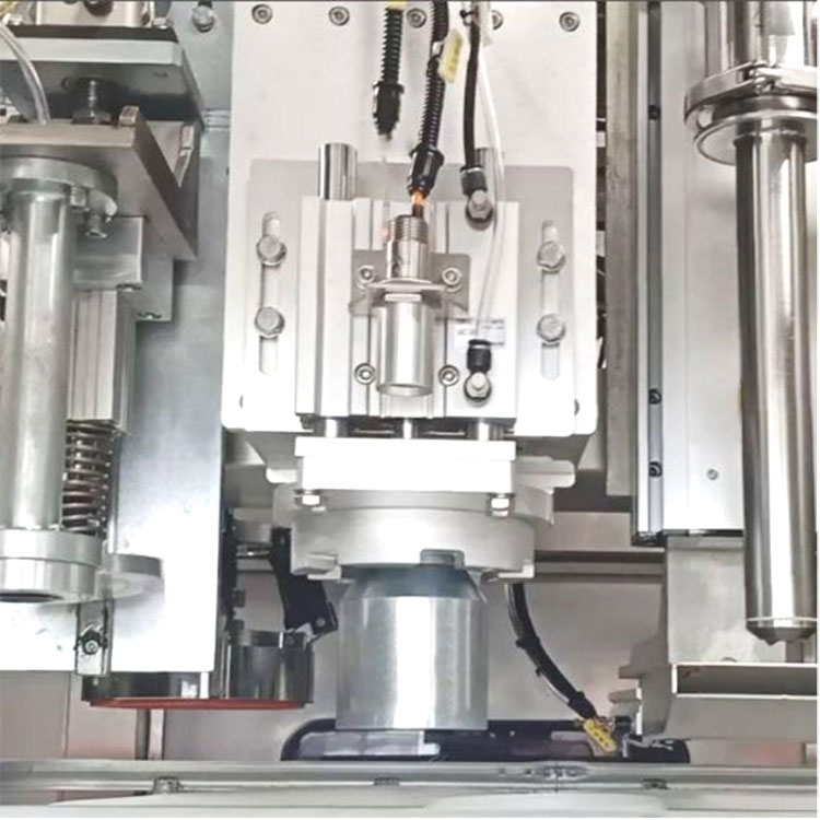Umshini wokugcwalisa uqukethe uhlelo lokuhlanza umlotha othomathikhi (umnyango wamakhethini omoya, ishawa yomoya), ukusesha okuzenzakalelayo nokubeka indawo, ukuvulwa kwekhava okuzenzakalelayo, ukugcwaliswa okuzenzakalelayo, ukugcwalisa i-nitrogen othomathikhi, ukuvala uphawu okuzenzakalelayo, isembozo esizenzakalelayo samanzi kanye nesembozo esiqinile. Iminyango yokuvimbela okuzenzakalelayo inikezwa ngaphambili nangemuva kwegumbi lokugcwalisa, futhi ikhethini lomoya libekwe ngaphambi nangemva kokungena ebhakedeni.