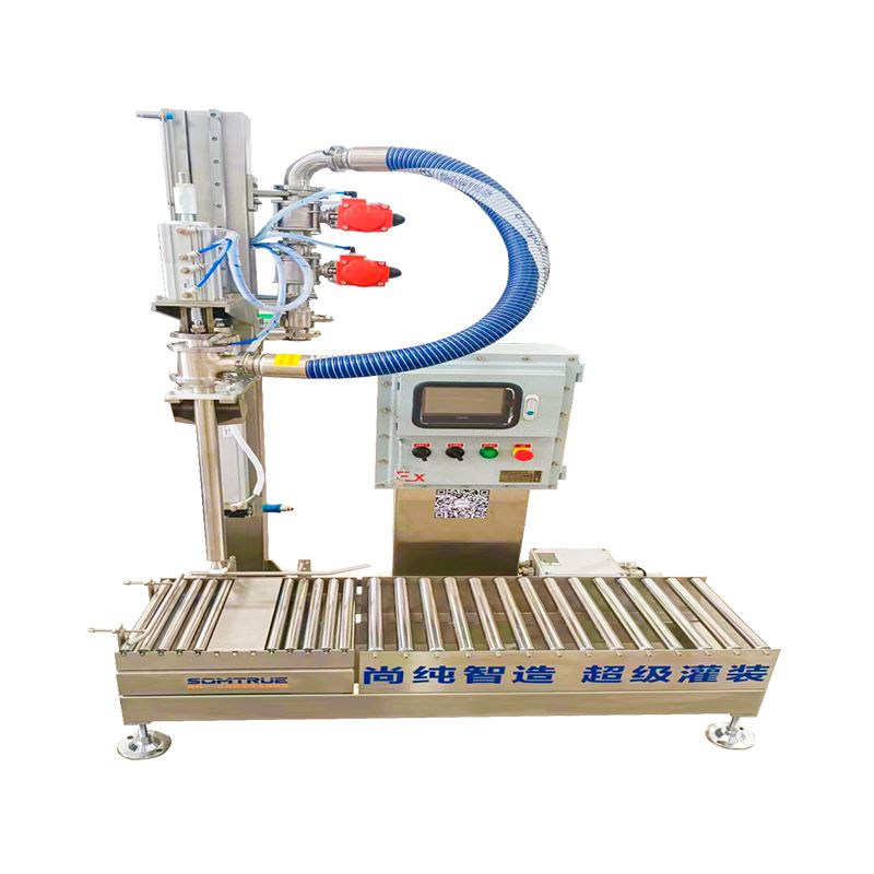 Ngemuva kokuthi umgqomo ongenalutho ulethwe endaweni, ukugcwaliswa kwesilinganiso esikhulu sokugeleza kuqala. Lapho umthamo wokugcwalisa ufinyelela umthamo ohlosiwe wokugcwalisa ama-coarse, izinga lokugeleza elikhulu livaliwe, futhi ukugcwaliswa kwesilinganiso sokugeleza okuncane kuqala. Ngemuva kokufinyelela inani elihlosiwe lokugcwalisa kahle, umzimba we-valve uvaliwe ngesikhathi. Kungumshini wokupakisha osetshenziswa kakhulu wezinto zokusetshenziswa zamakhemikhali.